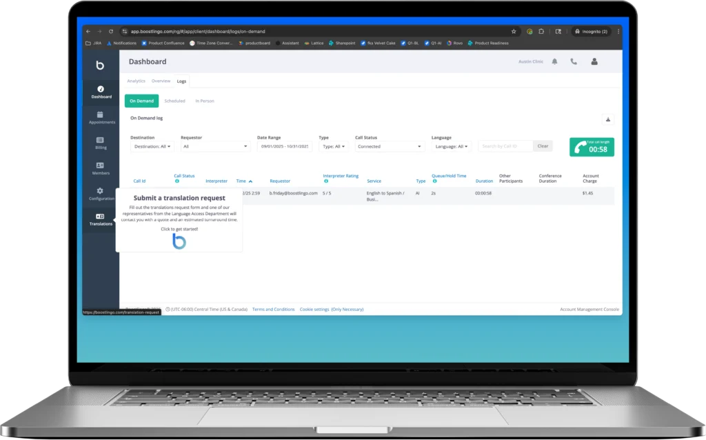 Boostlingo interpretation management system (IMS) simplifies the management for onsite and remote interpretation services, all in one place.