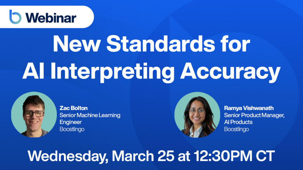 Join Boostlingo’s Senior Product Manager and Senior Machine Learning Engineer for an in depth look at what true accuracy means in AI supported interpreting and what our latest quality research reveals about raising the industry standard.